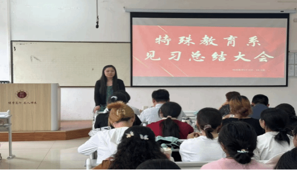 最后,系主任张玉红进行总结。她对本次见习活动给予肯定,指出特殊教育见习是学生将课堂所学理论知识运用到实际教学场景的关键环节,对培养学生的专业素养和实践能力有着不可替代的作用,深入特殊教育学校和机构,近距离接触特殊儿童,不仅增强了同学们对特殊教育事业的认同感和使命感,也在实践中发现问题、解决问题,实现了自身专业能力的成长。同时,她也对未来的见习工作提出期望,希望能进一步加强与见习单位的合作,拓展见习内容和形式,为学生提供更优质的实践平台。