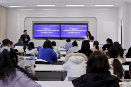 下午,五场专题分论坛于文育楼同步举行。与会专家聚焦多个前沿议题展开深度交流,研讨主题涵盖“领导力赋能学校课程·教学·教研高质量发展”“人工智能赋能中小学技术课程高质量发展的教学创新与实践反思”“数智技术赋能小学教学方式变革”“幼儿园课程改革与质量提升的探索与展望”以及“高质量发展背景下特殊教育课程·教师·教学”。现场研讨气氛热烈,展现了理论探索实践创新的深度融合。