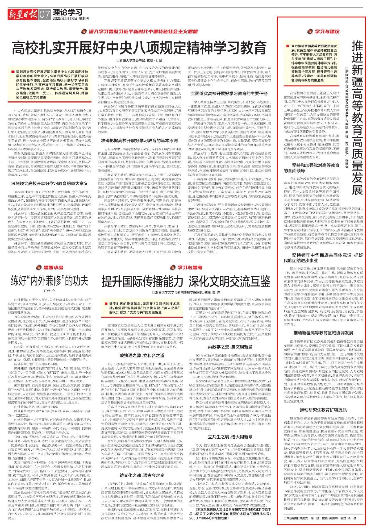《新疆日报》 |  多强、张晓会:推进新疆高等教育高质量发展