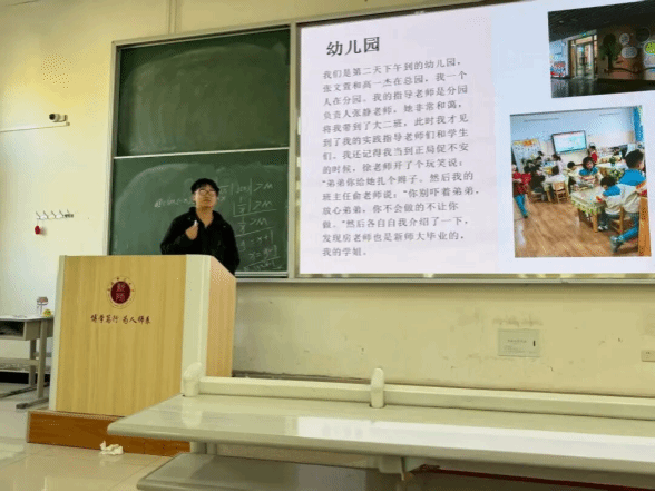 学前教育22-8班王婉迪以“恪守初心,探索童心”为主题进行分享,介绍了自己在特克斯幼儿园中一班的收获。她勇于创新,尝试将AI技术融入教学活动,通过组织“我的梦想”主题活动,让幼儿看到未来的“自己”,在孩子们心中播下梦想的种子。她总结道,这段经历不仅坚定了她的专业自信,更让她深刻认识到,将理论转化为实践需要极大的耐心与教育智慧。