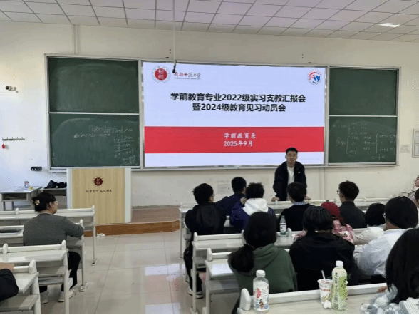 实践淬炼真知,接力共育未来。为系统总结2022级学生实习支教工作的经验与成果,并为即将展开的2024级教育见习工作奠定坚实基础。学前教育系于9月25日召开了“2022级实习支教汇报会暨2024级教育见习动员会”。会议由学前教育系副主任刘亚主持,学前教育系王晓梅副教授、2024级6班班主任江骏老师、2022级9班苏超举老师以及2022级和2024级全体本科生参加。